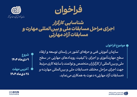 فایل فراخوان شناسایی کارگزار جهت اجرای مراحل مسابقات ملی و بین‌المللی مهارت و مسابقات آزاد مهارتی